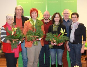 Die Haßberge Grünen vertrauen ihrer Vorstandschaft und bestätigten das sechsköpfige Gremium des Kreisvorstandes. Einstimmig in ihren Ämtern bestätigt wurden Matthias Lewin, Mitglied des Kreistages aus Knetzgau, Claudia Dünninger-Woy aus Goßmannsdorf als Schatzmeisterin, Harald Kuhn, Stadtrat aus Zeil, Katrin Müller aus Rügheim, Volker Popp aus Sylbach und Karla Schreiber aus Haßfurt. Bezirksvorsitzende Barbara Pfeuffer und Landesvorsitzender Eike Hallitzky wünschten der neuen und "alten" Vorstandschaft viel Energie und Durchsetzungskraft für ihre weitere politische Arbeit.