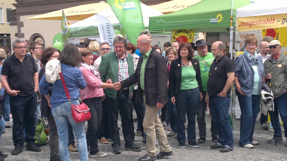 Krankenhausseelsorger Franz Feineis und seine evangelische Pfarrerskollegin Eva Loos eröffneten den „Feiertag“ mit einem „Halleluja Jesu für das Abschaltfest“. Zwischen etlichen musikalischen Beiträgen führte Moderator Holger Laschka durch das Programm und interviewte zahlreiche Prominente aus der Region sowie der Landespolitik. Von Grüner Seite bereicherten Eike Hallitzky, bayerischer Landesvorsitzender der Grünen, Bezirksvorsitzender Nicolas Lommatzsch, der „Erfinder“ des Erneuerbaren Energie-Gesetzes, Hans-Josef Fell, und Grünen-Kreisrat Kreisrat Walter Rachle die Bühne. Aber auch die Co-Landesvoristzende, Sigi Hagl aus Landshut, sowie eine Vielzahl von Grünen aus Unter und Oberfranken, der Oberpfalz, Weimar, Berlin, Hamburg und Aachen, feierte das Aus für das älteste, aktive Atomkraftwerk in Deutschland, auch wenn die endgültige Abschaltung wohl noch drei Wochen auf sich warten lässt.