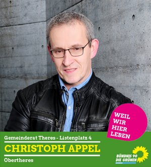 „Klimaschutz ist Zukunftsschutz“ das ist schon seit vielen Jahren mein Motto, das ich zusammen mit unterschiedlichsten Organisationen und Gruppierungen in die Öffentlichkeit trage. Ich sehe es daher auch als meine Pflicht für die Gesellschaft an, mich im Kreistag Haßberge und Gemeinderat Theres, für dieses Motto und viele weitere wichtige Themen stark zu machen. Für eine lebenswerte Zukunft der heutigen und der folgenden Generationen.