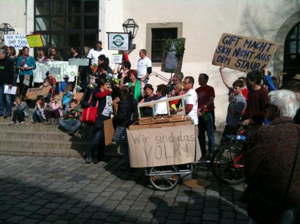 Haßfurt Rund 500 Bürgerinnen und Bürger demonstrierten am Dienstagnachmittag in der Haßfurter Innenstadt und vor dem Landratsamt gegen die Verschleierungstaktik des Landrats und der Firma Loacker. Der Protest gegen den giftigen Staub richtete sich in erster Linie gegen die viel zu spät aktiv werdende Kreisbehörde und die immer wieder kehrenden Verharmlosungen des Landkreis-Chefs. Mit Trillerpfeifen, Ratschen und der Frankenhymne ("Wohlauf, die Luft geht frisch und rein") machten nicht nur Wonfurter Bürgerinnen und Bürger ihrem Unmut lautstark Luft.