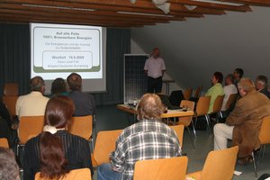 Wonfurt. Das Steinzeitalter war gestern. Heute leben wir im Ölzeitalter. Und morgen? Im Solarzeitalter, wenn es nach dem Bundestagsabgeordneten Hans-Josef Fell von den Grünen geht. „Möglich und nötig", sagt er mit Nachdruck, „ist das nicht erst in Jahrhunderten, sondern in wenigen Jahrzehnten". Bei der gutbesuchten Veranstaltung im Wonfurter Feuerwehrhaus beantwortete zudem Handwerksmeister Johannes Schramm aus Nüdlingen technische Fragen zur Fotovoltaik und Rudolf Göpfert von der Raiffeisen-Volksbank Haßberge erläuterte die dazu gehörige Finanzierung.