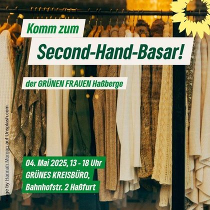 Am 4. Mai 2025 luden die GRÜNEN FRAUEN Haßberge zu einem Second-Hand-Basar ins Grüne Kreisbüro in Haßfurt ein. Viele Besucherinnen und Besucher nutzten die Gelegenheit, gut erhaltene Kleidung zu stöbern, neue Lieblingsstücke zu finden und gleichzeitig etwas Gutes zu tun.